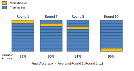 执行k轮次学习,每一轮1/k个数据作为测试数据,其他作为训练数据