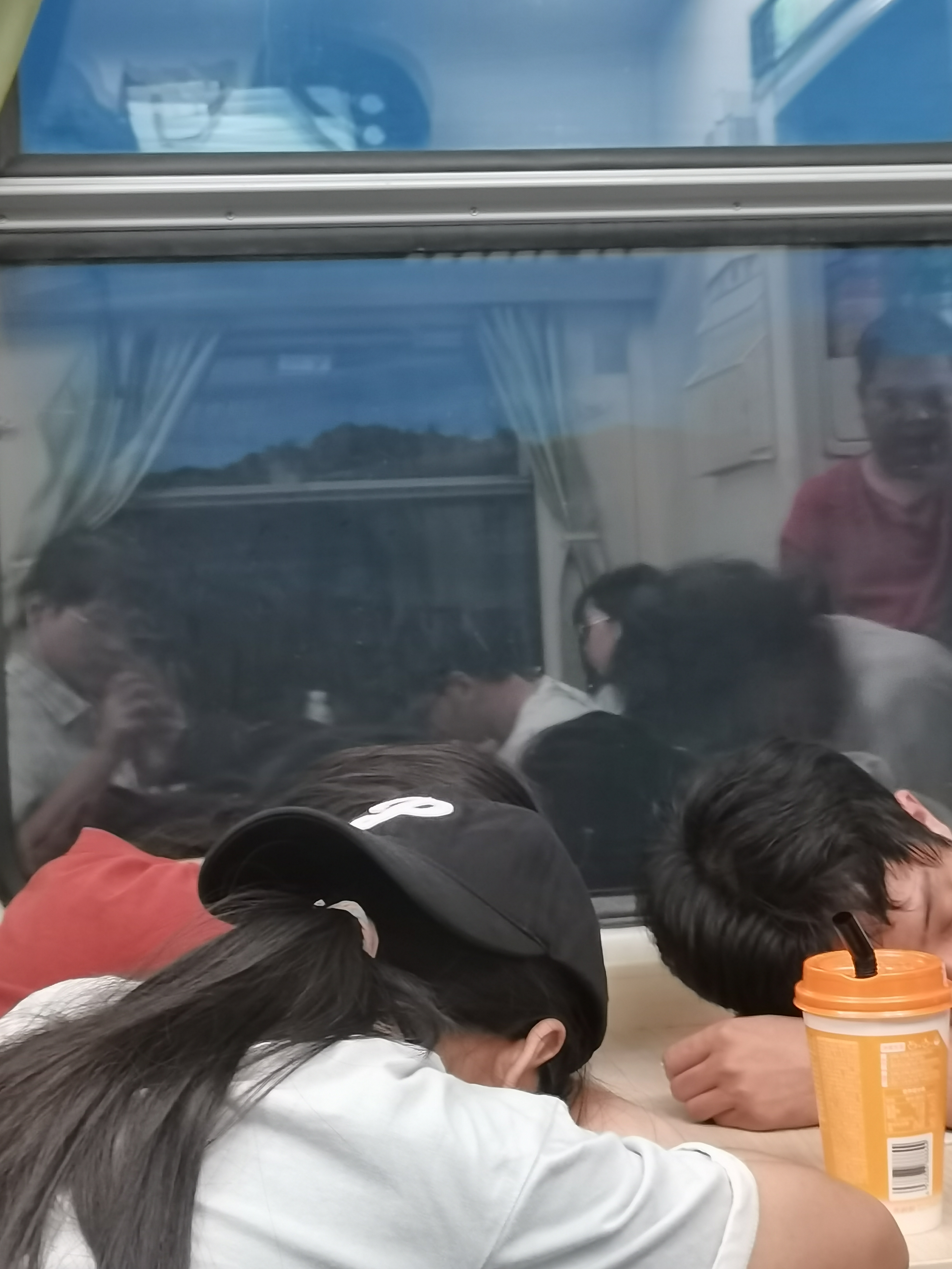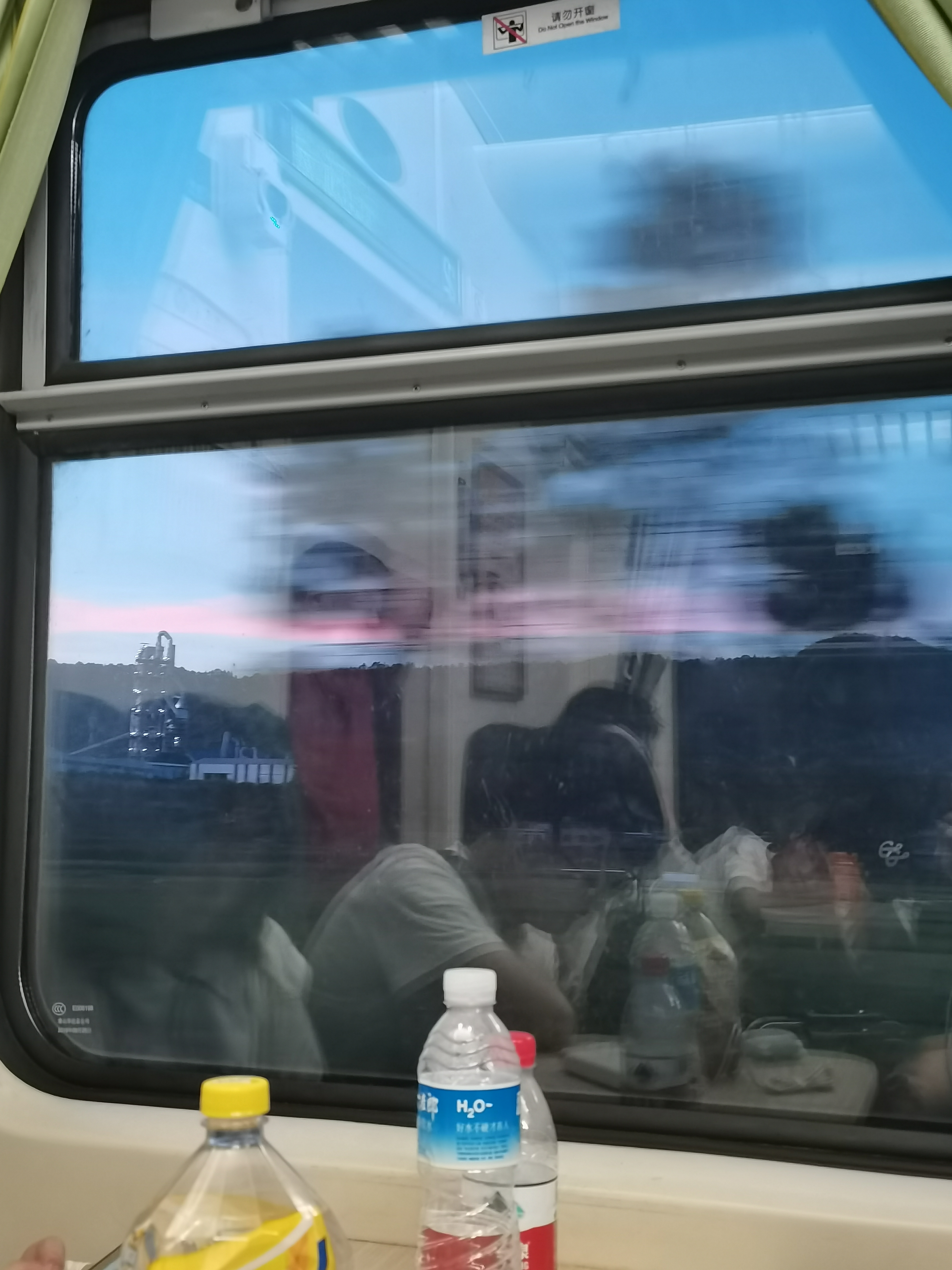 最后我们还是硬座回去,但是与之前不同,这次显得更加的拥挤,站票的人们挤作一团,蜷缩在狭窄的过道上,大部分人都在没有空调的出口那里挤着,十分的困难,更重要的是我们定的晚上的票,所以他们不得不考虑站着睡觉。有的人甚至还看上了我露出来的一点点座位的缝隙,将屁股移到那里只为了让自己能轻松一点。最后实在不好意思就席地而坐然后双手抱着膝盖这样睡觉,还要被时不时路过上厕所的人叫醒。甚至还有人2点多了还要跑到出口那里去抽烟,我也是醉了(😶)。在门口的那个胖哥们甚至站着都睡着了,还发出了很大的鼾声,姿势也很搞笑,一只手竖着搭载门沿上,身体靠在这只手的位置,另一只手垂直于门沿,手掌搭在另一个门沿上,形成了一个“直角”的姿势,不过也很辛酸的,看起来实在是太辛苦了,而且这样也没有办法睡太死,稍有动静就醒来了,那个兄弟就只能费劲的张开半只眼来观察周围的动静,然后又很快的睡着很快的醒来,周而复始。我这次还是没有分到有桌子的那一侧,所以我只好坐正了睡觉,但是每睡不了半小时就被脖子的酸痛所“叫醒”,实在没办法睡了,根本睡不着,但是又很困,睡不着就玩玩手机,然后不知不觉进入睡眠等待下一次的醒来。于是在这种半梦半醒的状态下迎来了天亮,“相与枕藉乎舟中,不知东方之既白”。
