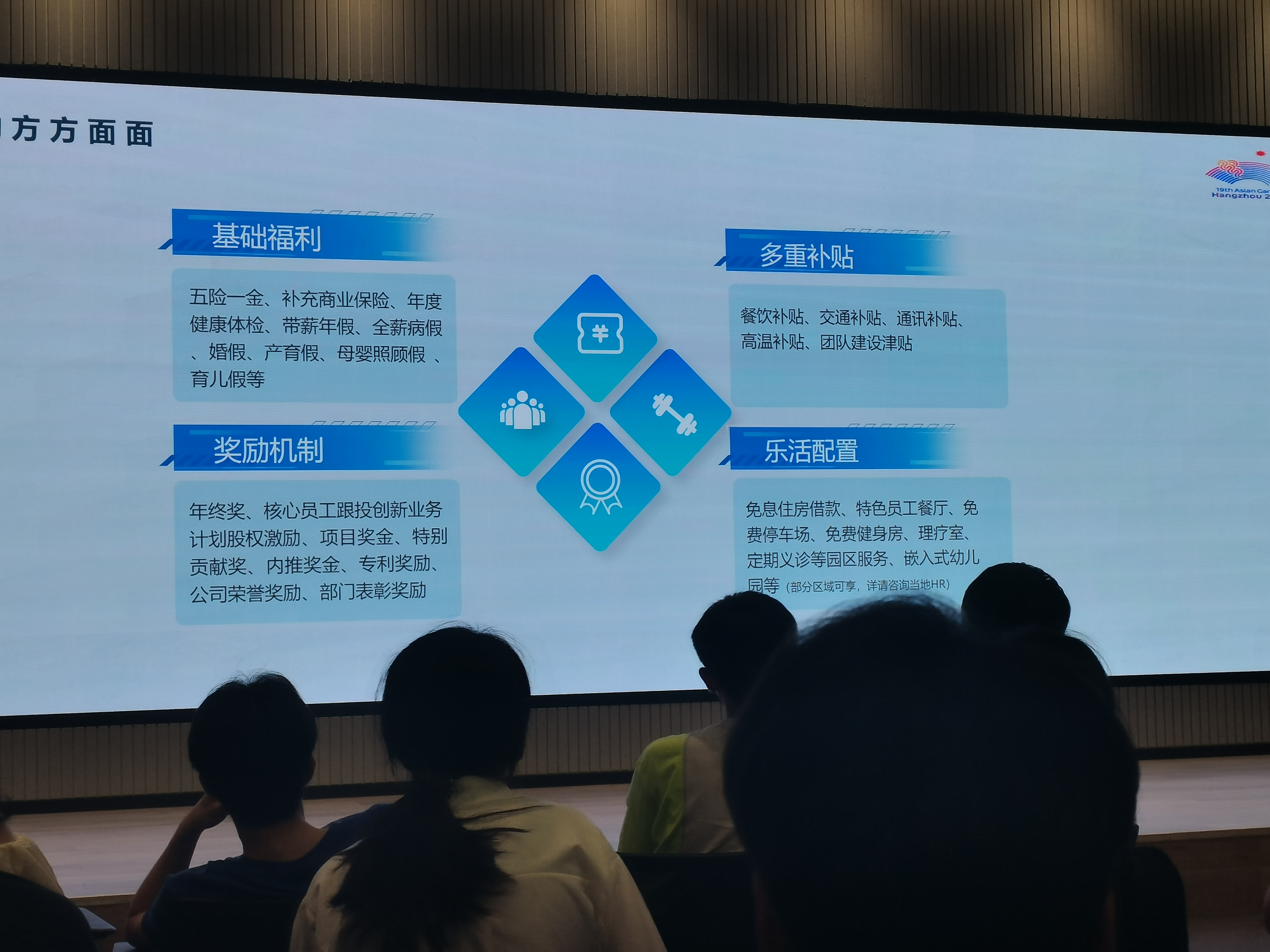 然后就到了四期区的会议厅听报告,几位给我们宣讲的学长很有意思,两位都很腼腆,其中一位学长说的话也很有道理,就是如果你真的下定决心去做一件事,那么一年的时间足以,这次实习游玩结束之后我也当定下自己的考研决心,收心学习了。海康威视的人才培养方案看起来也相当的可以,不管是从技术层面还是管理层面都很不错,而且正常的福利薪资都很不错。