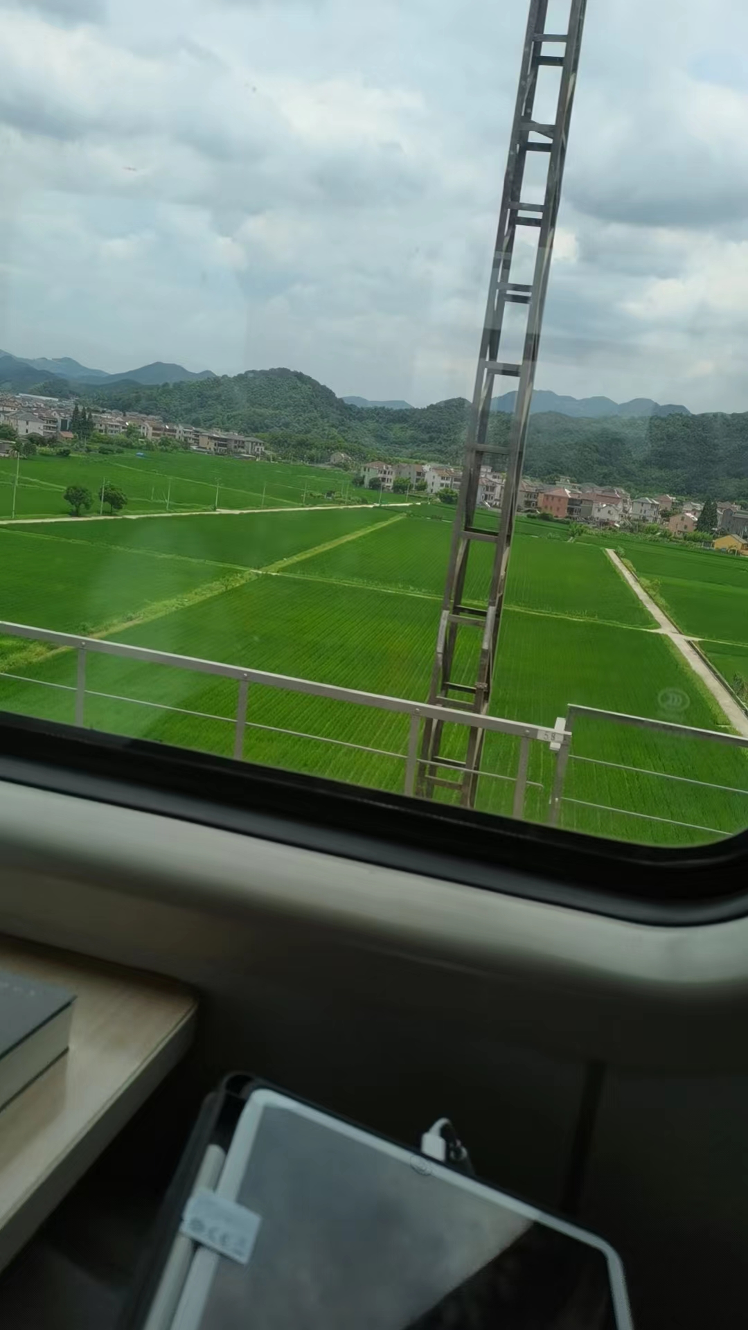 等啊等终于车到了,我们提着行李箱一路奔驰到车门处,学校给我们订的票是硬座,一走进去就惊到了,中间的道路十分的狭窄,能通过行李箱就已经是极限了,然后座位也是非常的狭窄,我的那个位置要坐下3个人,但是只有最里面才有小桌子,也没有充电的地方,由于我没有充电宝所以只能节省用电,掏出了我新买的《地铁》小说开始看,其实车里面的灯也是属于不是很亮的类型,散发出淡淡的黄光,就像我现在住的酒店的灯光,不是很适合读书。看了一会就感觉到了疲倦,于是闭目养神。没有桌子的依靠不方便睡眠,所以只能小憩一会就醒来继续看书。就这样半睡半醒的度过了那一段时间,终于天亮了,天亮得很早,5点出头就已经白昼,路上的美景也有不少,印象最深刻的就是广阔的农田,因为地势的平坦所以很多土地连在一起做的农田,青青的麦子在风中摇曳,给人一种”勃勃生机,万物竟发”的景象(笑),还有就是火车在行进路上时不时就发出鸣笛的声音,悠长而尖锐,然后就看到身着工作服的火车工人们在旁边默默的等待火车的通过,感谢他们,到了白天找刘杰接了充电宝,然后开始看起了大决战系列的电影解说,时间就这样悄然过去,直到到达目的地。