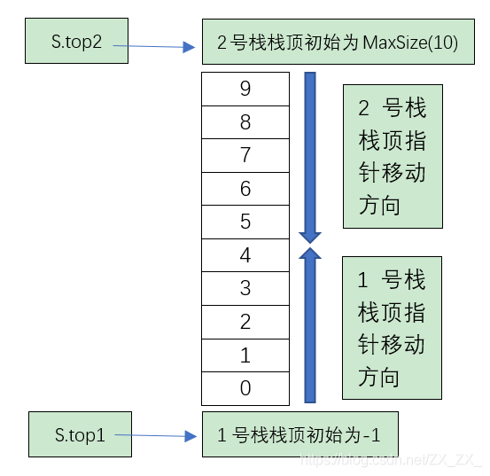顺序栈中为了更加有效利用存储空间,提出共享栈,让两个顺序栈共享一个一维数组空间,两个栈的空间相互调节,通过两个栈顶指针相减为1判断栈满,减少存储空间,降低发生上溢的可能。